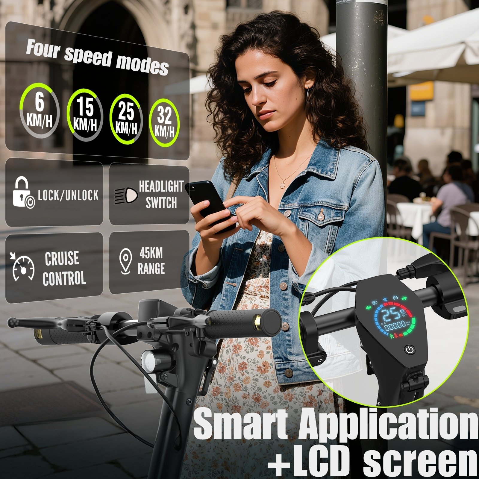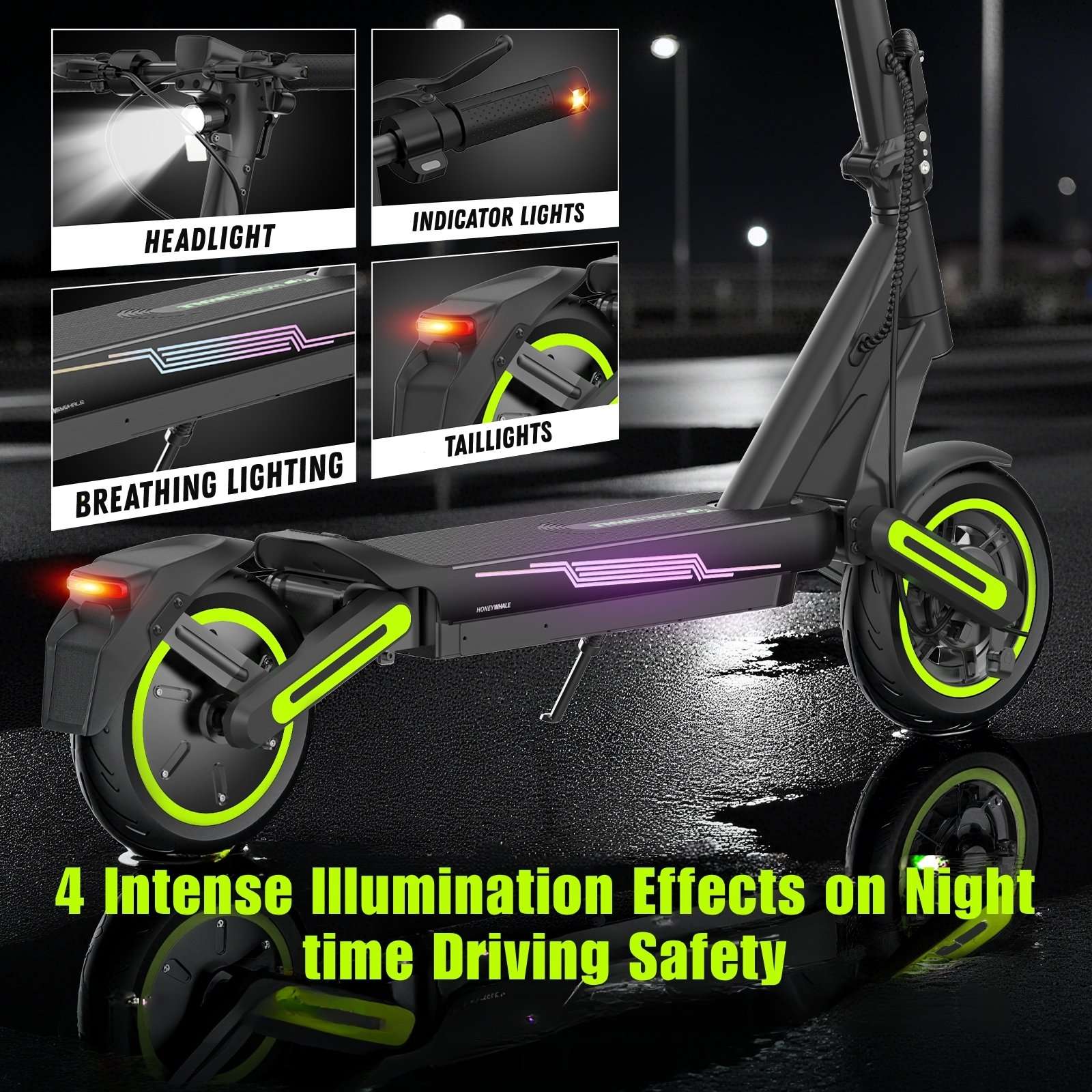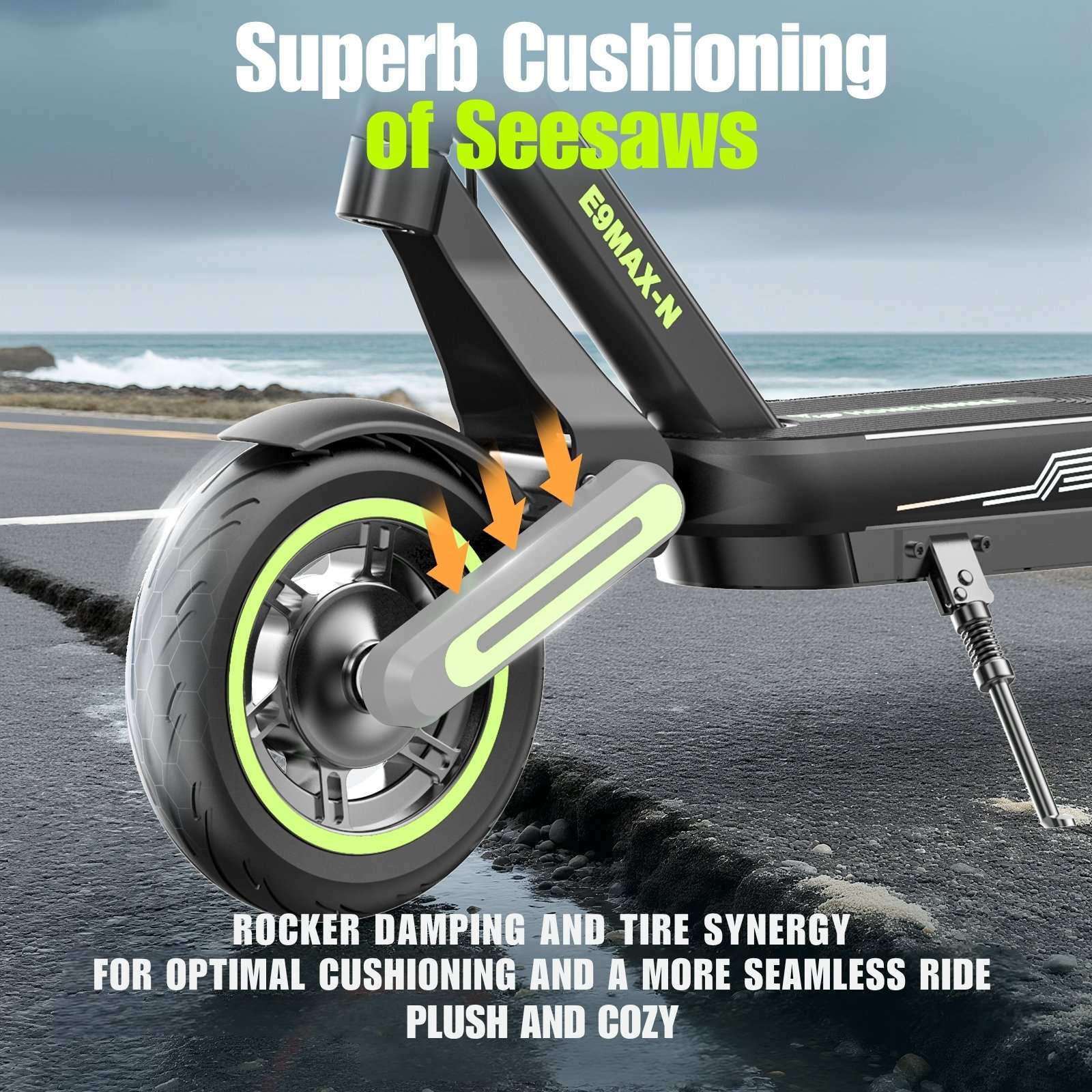 The 2025 Honey Whale E9 MAX-N introduces our latest design for urban riding—confident, comfortable, and easy to live with. A torquey 500W rated (650W peak) hub motor moves you up to 32 km/h across four riding modes (including a 6 km/h Walking Mode), while the 42V/15Ah battery delivers up to 45 kilometres per charge. 10-inch pneumatic tyres with dual front-and-rear suspension smooth out bumps, and disc + electronic braking with Brake Assist provides calm, controlled stops. A clear LCD shows speed, range and lights, while Cruise Control keeps pace on longer paths, Left / Right Indicators, and the bright front LED with rear stop warning boosts visibility. Built from aluminium alloy with IPX4 water resistance, it folds in seconds to a compact 119.5 × 60 × 54 cm and weighs just 22 kg—easy to pop in the boot or by your desk—yet carries riders up to 120 kg. The charger accepts 100–240V input for travel-friendly top-ups.