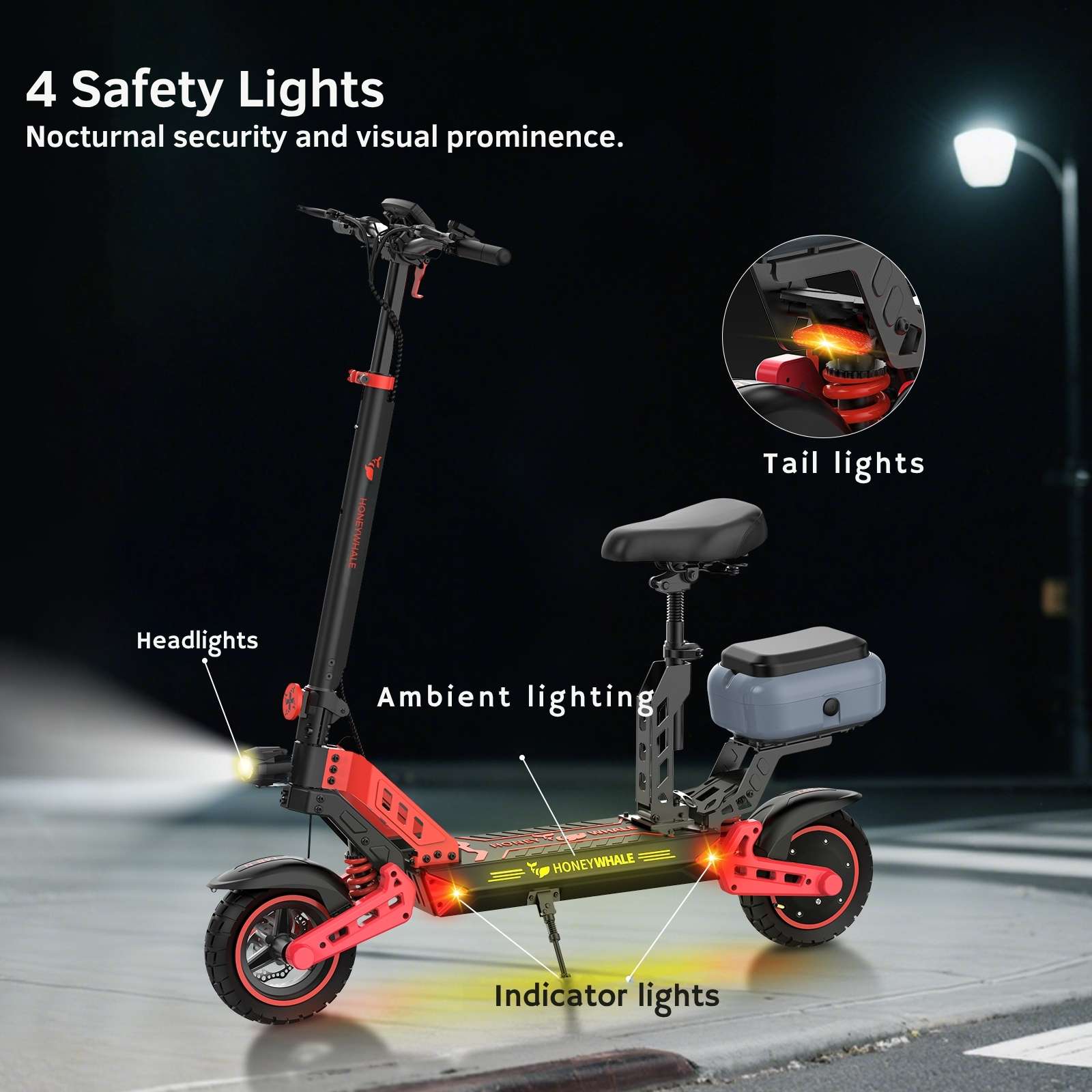 | Lighting | Powerful Front LED and Stop Warning |
